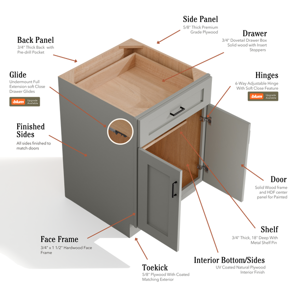 Seaport Light Gray Base Cabinet - 18w 34½h 24d -
