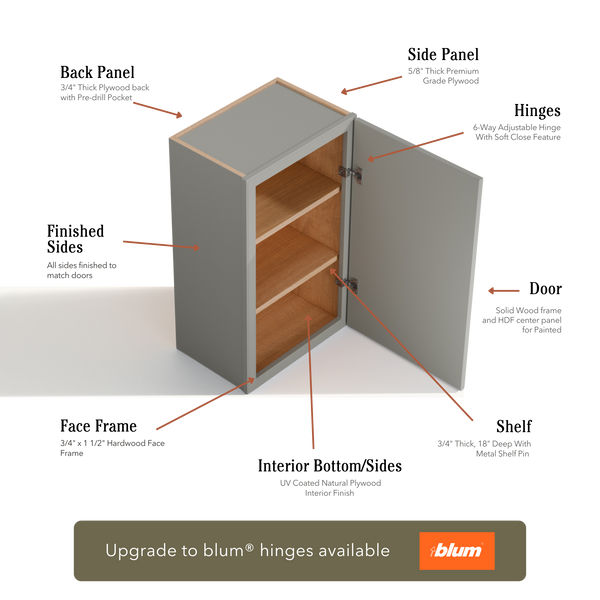 Seaport Light Gray Wall Cabinet - 18w 30h 12d -